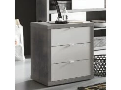 Caisson De Rangement à Roulettes 3 Tiroirs Décor Gris Béton Et Blanc – NET