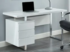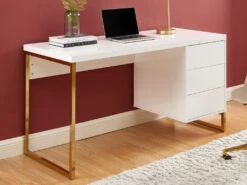 Bureau Avec 3 Tiroirs – MDF Laqué Et Métal – Blanc Et Doré – TIMFIA De Pascal Morabito