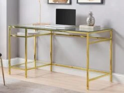 Bureau Avec 2 étagères – Verre Trempé Et Acier – Doré – TIZIO De Pascal Morabito