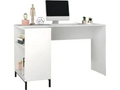 Bureau Châtaignier Blanc Bibliothèque 6 Niches Et 1 Caisson Intégrés