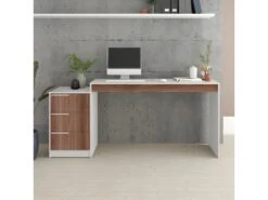 Bureau D’Angle Châtaignier Et Blanc Caisson 3 Tiroirs Et Armoirette