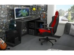 Bureau Extensible 2 Tiroirs Et 1 Niche – Coloris : Naturel Et Noir – EVAN