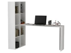 Bureau Extensible 2 Tiroirs Et 1 Niche – Coloris : Blanc Et Naturel – EVAN
