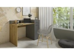 Bureau Droit Design Avec Caisson De Rangement Collection OFFICE Coloris Chêne Et Gris.