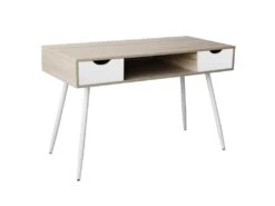 Bureau GOTAMA – 1 Tiroir Et 1 Porte – MDF Et Acier – Chêne Et Noir