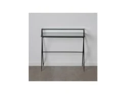 Bureau Moderne Avec Plaque De Verre Tiroir Latéral Pour Chambre D’ado 110 Cm Blanc 13_0000560