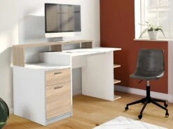 Bureau Châtaignier Blanc Bibliothèque 6 Niches Et 1 Caisson Intégrés