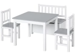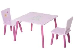 HOMCOM Ensemble Table Et Chaises Enfant Design Princesse Motif Couronne Bois Pin MDF Rose