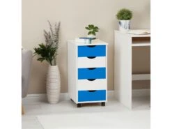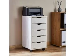 Caisson De Bureau LAGOS Meuble De Rangement Sur Roulettes Avec 5 Tiroirs, En Pin Massif Lasuré Blanc