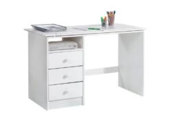 Bureau Enfant écolier Junior EMMA Pupitre Inclinable Avec 4 Tiroirs En Pin Massif, Lasuré Blanc