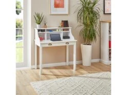 Bureau SANDRINE Multi Rangements 5 Tiroirs Et 1 Placard Avec Corniche En Pin Massif Lasuré Blanc