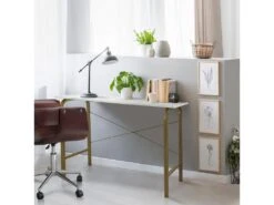 40″ Table De Bureau À Domicile Avec Plateau En Faux Marbre Et Cadre En Laiton