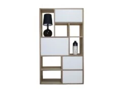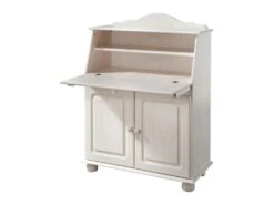 Composition Secrétaire Chêne Blanchi Massif Et Laqué, 2 Tiroirs, 1 Abattant, 1 Relevant – 108L X 38P