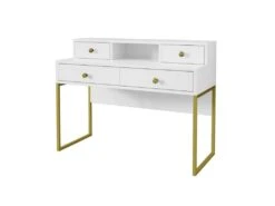 Ensemble De 2 Meubles De Bureau. Console Et étagère Collection DOUGLAS Coloris Blanc Et Doré