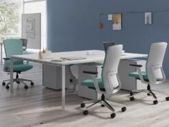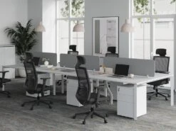 Bureau Bench 4 Personnes – Blanc – L140 Cm – Avec Séparateurs – DOWNTOWN