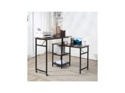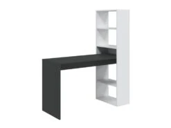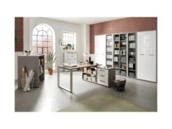 Bureau D’angles 2 Portes + 4 Niches Blanc/Béton – DAPATA PLUS – L 203 X L 66 X H 74 Cm