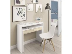 Table Console Billings, Bureau Avec Plateau Extensible, Bureau PC Avec 2 Tiroirs, 99x36h88 Cm, Blanc