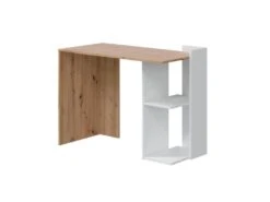 Bureau 2 Niches Réversibles Blanc/Chêne – AIKI – L 100 X L 52 X H 78 Cm