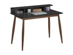 Bureau AMANI – 3 Tiroirs Et 1 Porte – MDF – Blanc Laqué Et Chêne