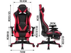 Fauteuil De Bureau Sport Chaise De Jeu Course En Cuir Synthétique Rouge Et Noir 19_0000091