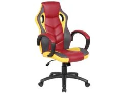 Chaise De Jeu Daren, Fauteuil De Jeu Pour Adultes, Chaise De Bureau, 57x72h124/134 Cm, Noir Et Rouge