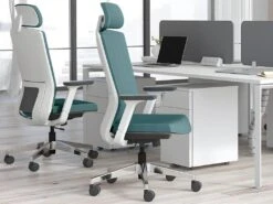 Fauteuil De Bureau Professionnel – Avec Têtière – Tissu – Bleu – VOLTI