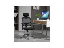 Chaise Siège Fauteuil De Bureau Dossier En Filet Support Lombaire 150 Kg Noir 14_0000881