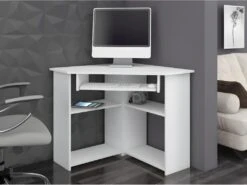MOLINE – Bureau D’angle Avec Rangement – 3 Tiroirs + 2 Etagères – 120x50x76 Cm – Bureau D’ordinateur