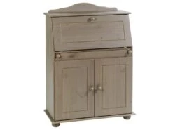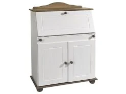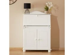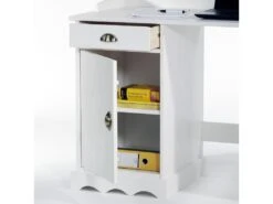 Bureau SANDRINE Multi Rangements 5 Tiroirs Et 1 Placard Avec Corniche En Pin Massif Lasuré Blanc