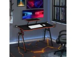 Bureau Gaming La Meilleraie En Bois Mdf Style Fibre De Carbone Noir / Rouge