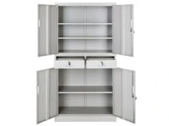 Armoire Métallique étagère Meuble 2 Compartiments + 2 Tiroirs Gris 0508079