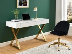 Chaise De Bureau – Velours – Hauteur Réglable – Beige – CAPIA