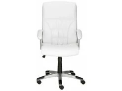 Chaise De Bureau Fauteuil Manager Pivotant Hauteur Réglable Revêtement Synthétique Capitonné Blanc
