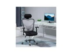 Fauteuil De Bureau Ergonomique Professionnel – Tissu Et Nylon – Gris Et Blanc – FURNIA