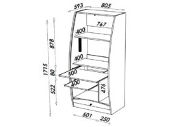 – Emplacement pour unité centrale verticale ou rangement de dossiers Largeur 25 cm x Hauteur 47.6 à 52 cm x Profondeur 48 cm