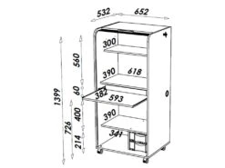 – 1 Niche haute : écran / imprimante ou scanner + 1 tablette réglable en hauteur
