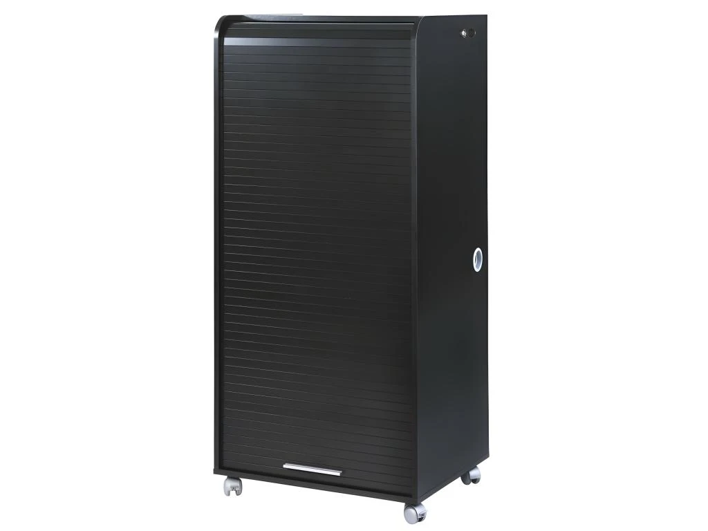 Armoire Informatique Mobile Noire avec Rideau Imprimé et 2 Tiroirs