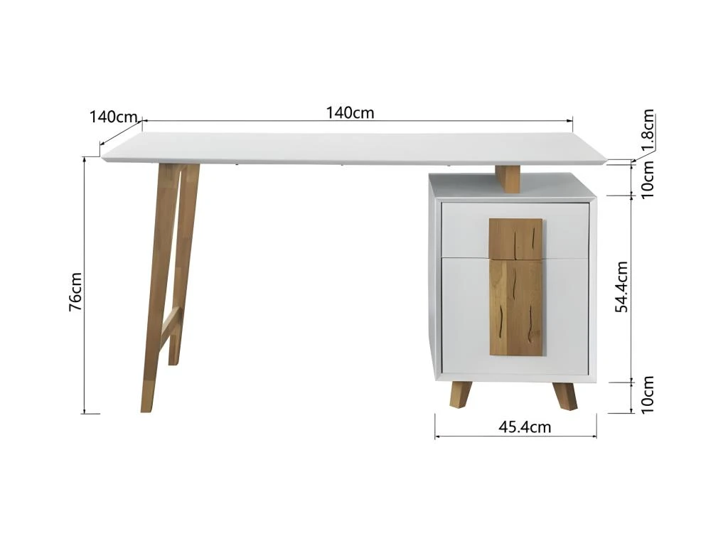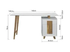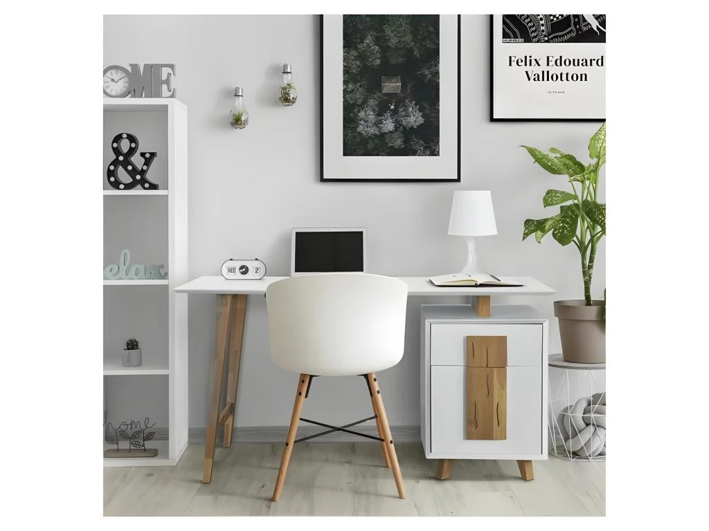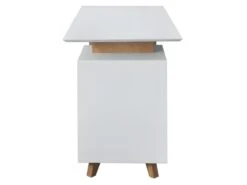 Bureau Extensible 2 Tiroirs Et 1 Niche – Coloris : Blanc Et Naturel – EVAN