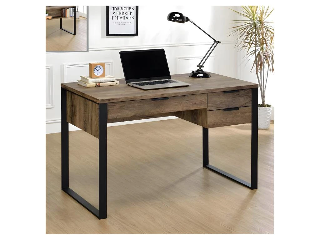 Réalisez un espace de travail à la pointe de la tendance avec ce bureau 3 tiroirs 1 niche de style mobilier Industriel.