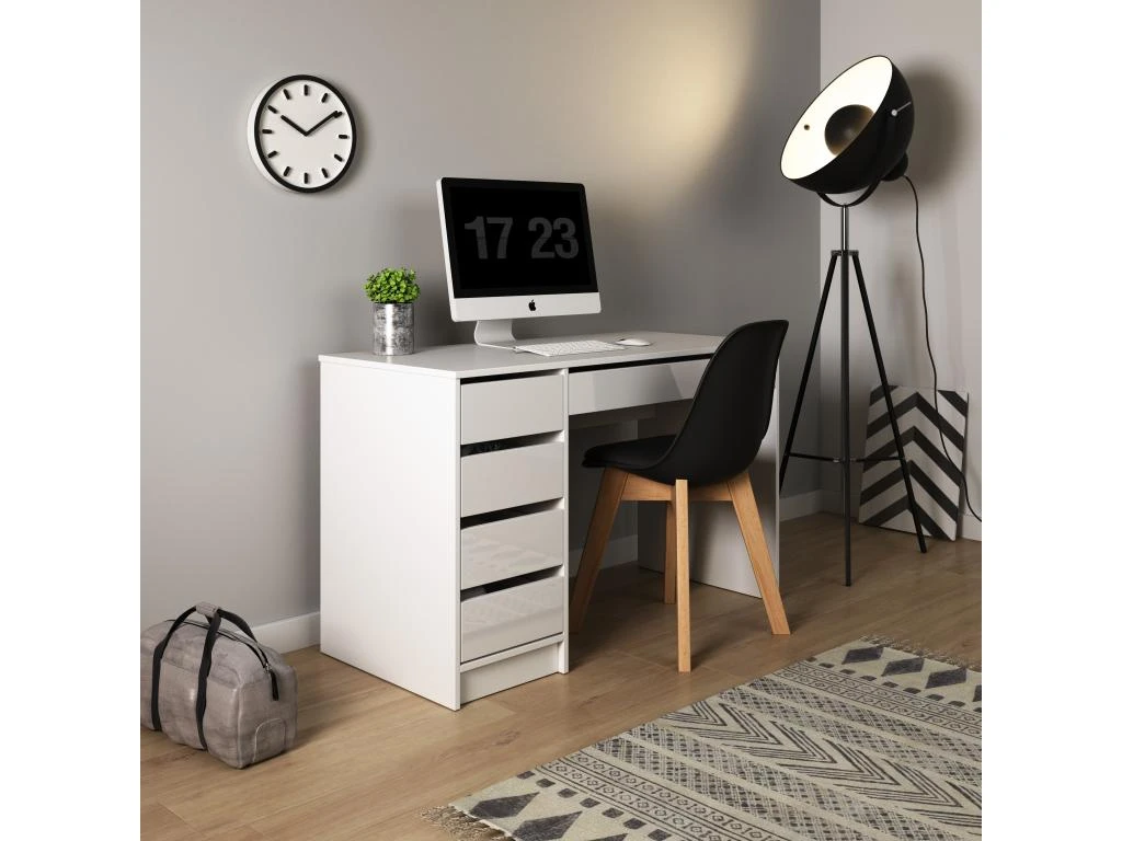 Bureau Avec 3 Tiroirs – MDF Et Métal – Blanc Et Doré – URENGA