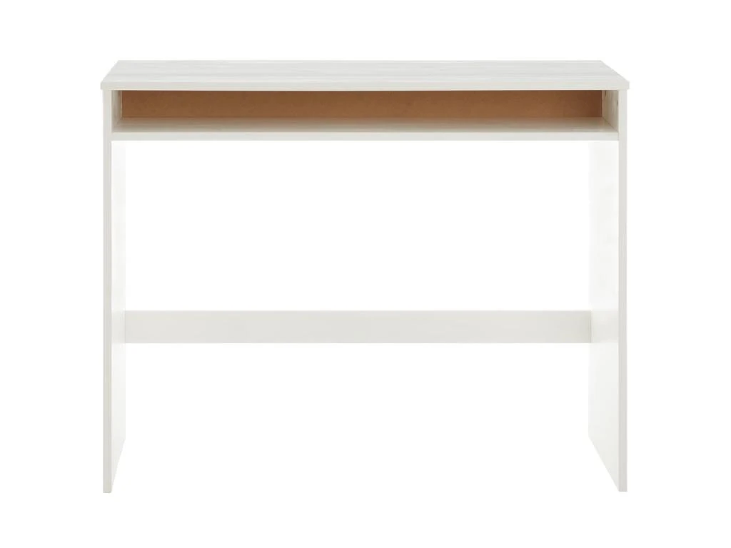 – Le bureau est fabriqué en pin massif et recouvert d’une lasure de couleur blanc.