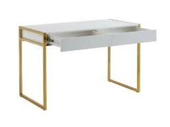Si vous êtes à la recherche d’un bureau tendance qui apportera une touche de modernité à votre intérieur tout en vous offrant un réel espace de rangements, le bureau MASON est fait pour vous ! Avec son piètement en métal doré et son plateau en MDF laqué, le bureau MASON apportera de la lumière à votre pièce. Ses 2 tiroirs, positionnés sous le plateau, vous permettront, quant à eux, de ranger l’ensemble de vos affaires de travail à l’abris des regards.