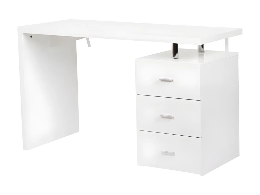 Bureau Extensible 2 Tiroirs Et 1 Niche – Coloris : Blanc Et Naturel – EVAN