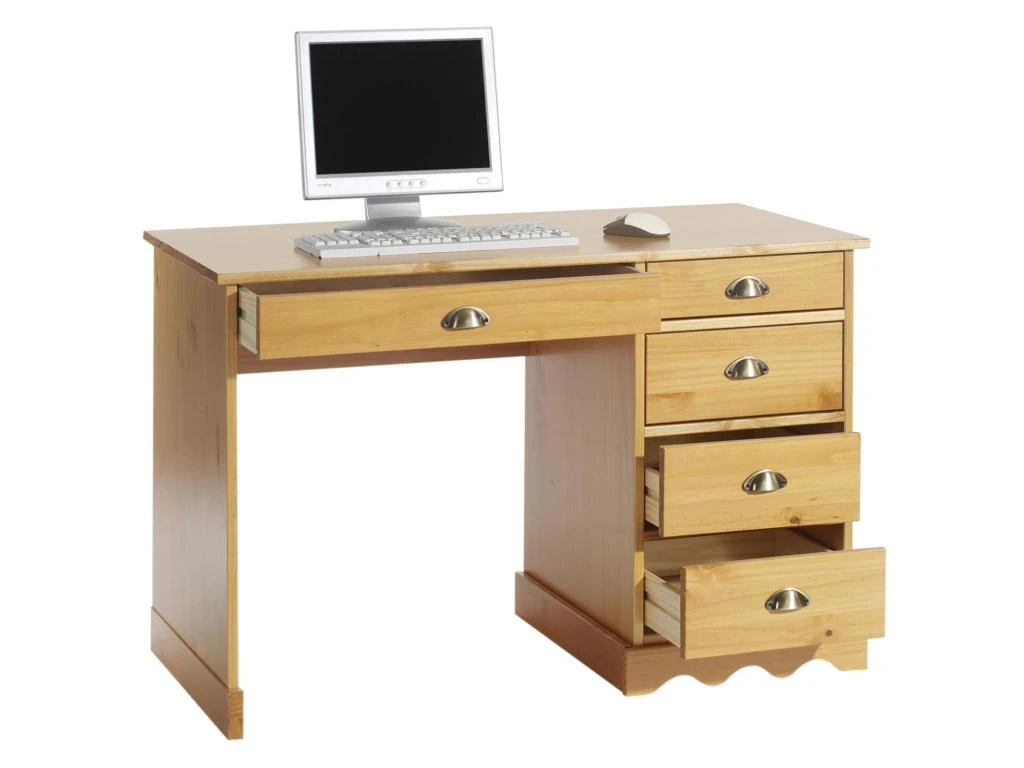 – Le bureau est fabriqué en pin massif, recouvert d’une lasure de couleur miel.