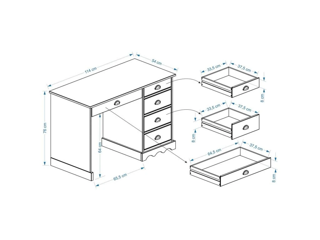 – 3 moyens tiroirs et 1 petit tiroir sur le côté