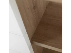 - COMPOSITION : Structure en panneau de particules mélaminé, fabriqué à partir de bois 100% recyclé, FSC (Forest Stewardship Council) de 16, 22 et 30 mm d’épaisseur. Revêtement décor chêne texturé et blanc brillant vernis PU. Fond arrière en MDF.