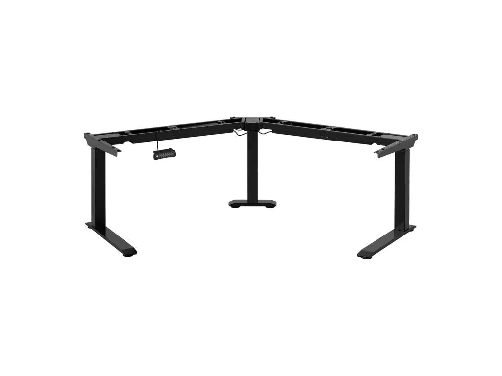 Le piètement pour bureau d’angle réglable en hauteur permet de travailler en position assise et debout.