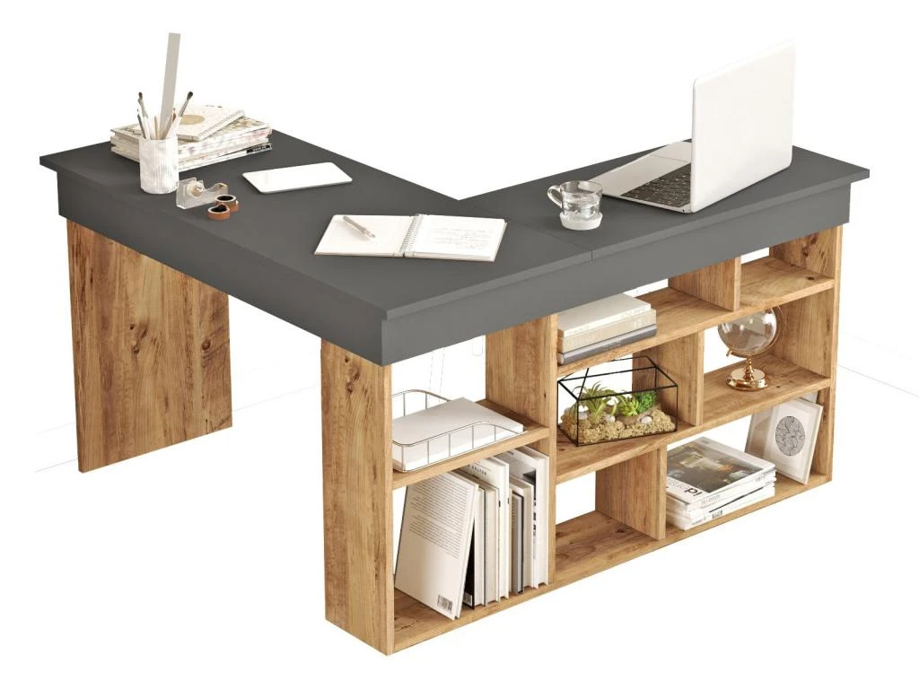Grâce à des étagères incorporées dans l’un de ses pieds, le bureau d’angle LILEUL est le meuble parfait pour créer du rangement dans votre espace de travail. Réel bureau d’angle, LILEUL vous offre 2 grands et profonds plateaux, parfait pour des journées de télétravail productives !
