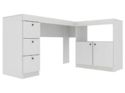 Bureau d’Angle Blanc Caisson 3 Tiroirs et Armoirette 2 Portes Intégrés OFFICE