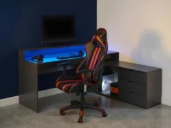 Avec son design conçu pour vous apporter tout le confort nécessaire, le bureau d’angle NEHA dispose de rangements très pratiques. Vous pourrez y disposer une configuration avec 2 voire 3 écrans, votre clavier, votre souris et tous vos périphériques externes. Il dispose également de LEDs de plusieurs couleurs qui illumineront votre intérieur !